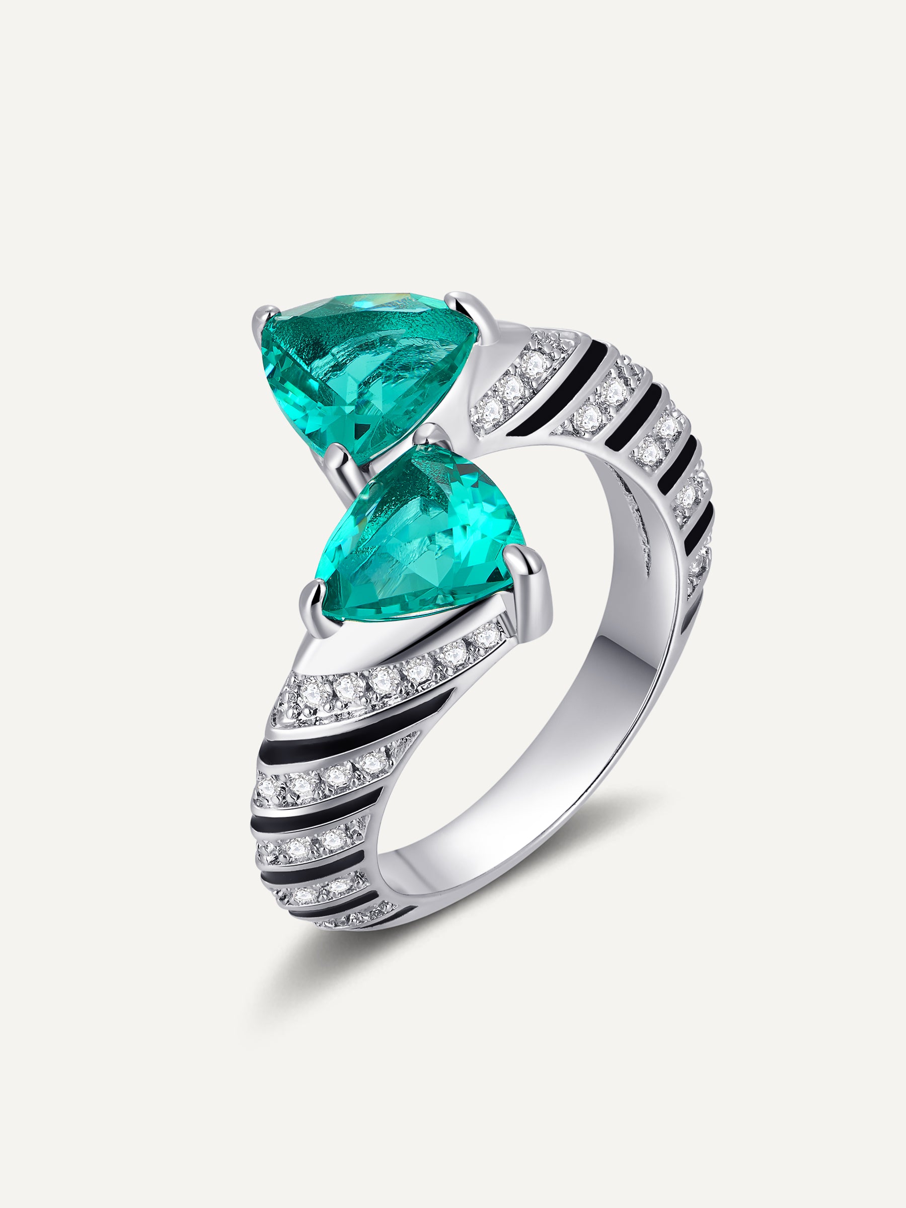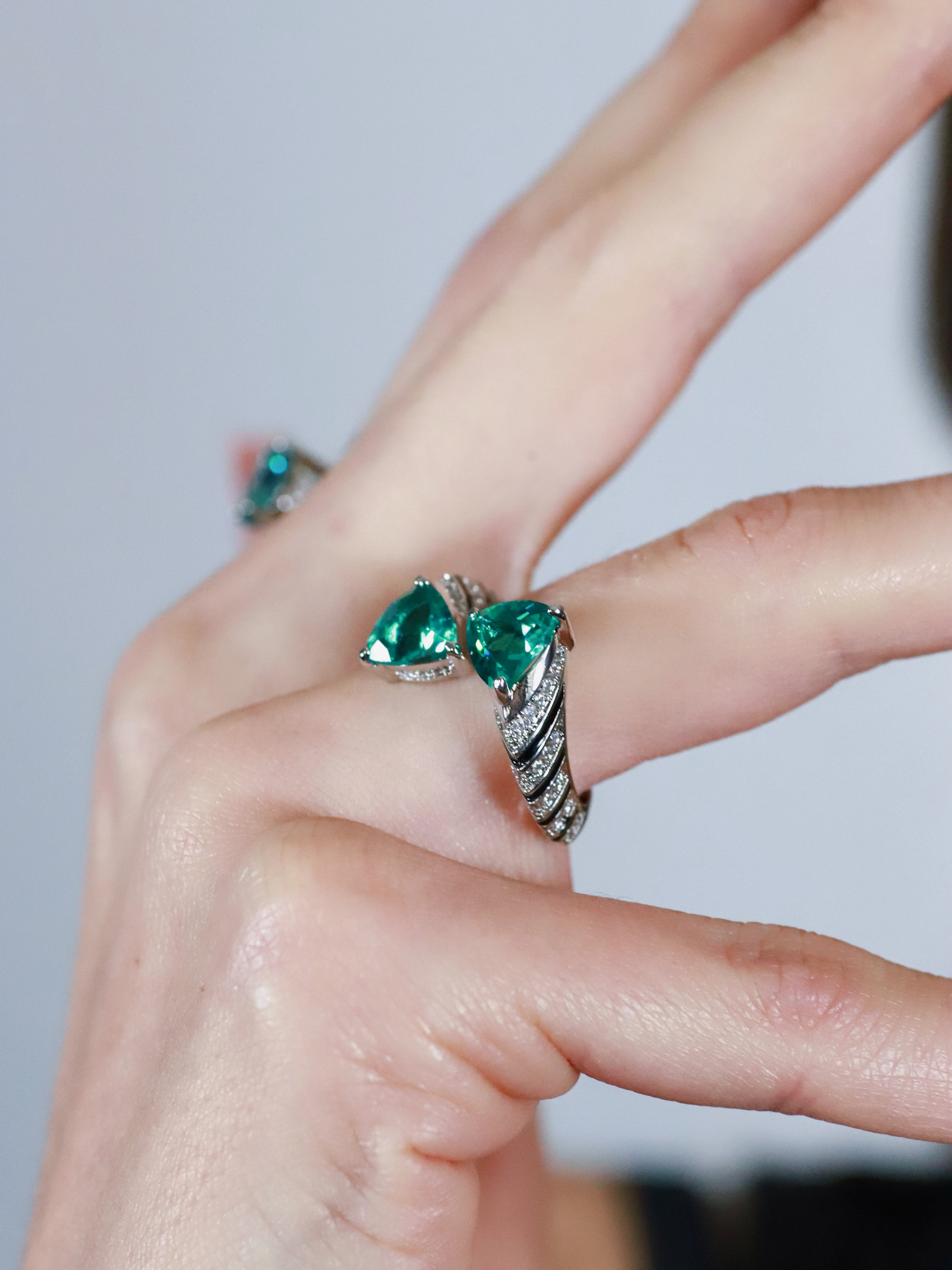 Green Snake Triangle Zircon Diamond Ring
